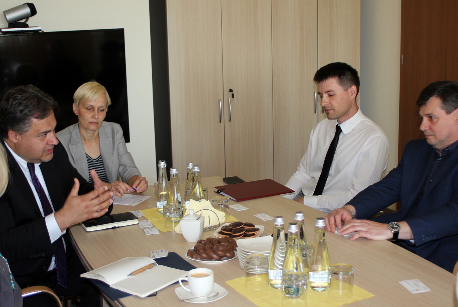 2 czerwca br. Politechnikę Rzeszowską odwiedzili Kathleen Graham z Agencji Ochrony Środowiska (EPA) i Thomas Zia, konsul ds. polityczno-ekonomicznych z Konsulatu Generalnego USA w Krakowie – uczestnicy konferencji Impact'17 w Krakowie. Spotkał się z nimi prof. dr hab. inż. Grzegorz Budzik, prorektor ds. nauki oraz dr hab. inż. Mariusz Oleksy, prof. PRz, prorektor ds. rozwoju i kontaktów z gospodarką. W rozmowach wzięli udział również dr inż. Sławomir Stec, p.o. dyrektor Centrum Transferu Technologii, Maciej Szalacha, p.o. kierownika Laboratorium Badawczego Aeoropolis, Marek J. Guzik, specjalista ds. polityczno-ekonomicznych z Konsulatu Generalnego USA w Krakowie, oraz Izabela Misiewicz-Santos, asystentka ds. energii i nauki z Ambasady USA w Warszawie.