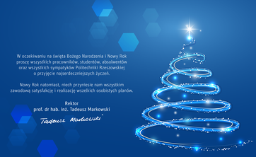 - W oczekiwaniu na Święta Bożego Narodzenia i Nowy Rok proszę wszystkich pracowników, studentów, absolwentów i sympatyków Politechniki Rzeszowskiej o przyjęcie życzeń - mówi prof. Tadeusz Markowski.